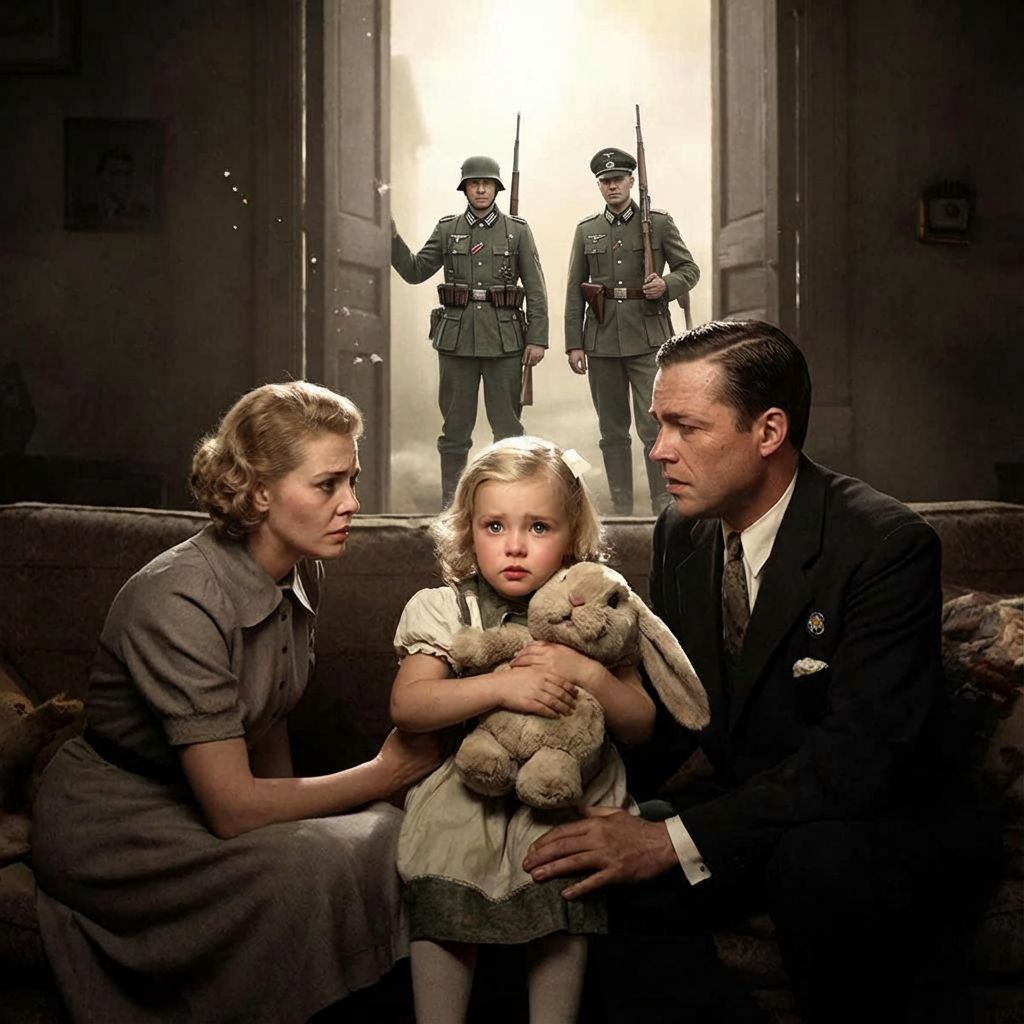 Лизеле смотрела на родителей, потом на солдат, и в ее глазах мелькнула тень — словно она уже видела этот момент раньше. Но она лишь кивнула и взяла протянутую солдатом руку. Не плакала.