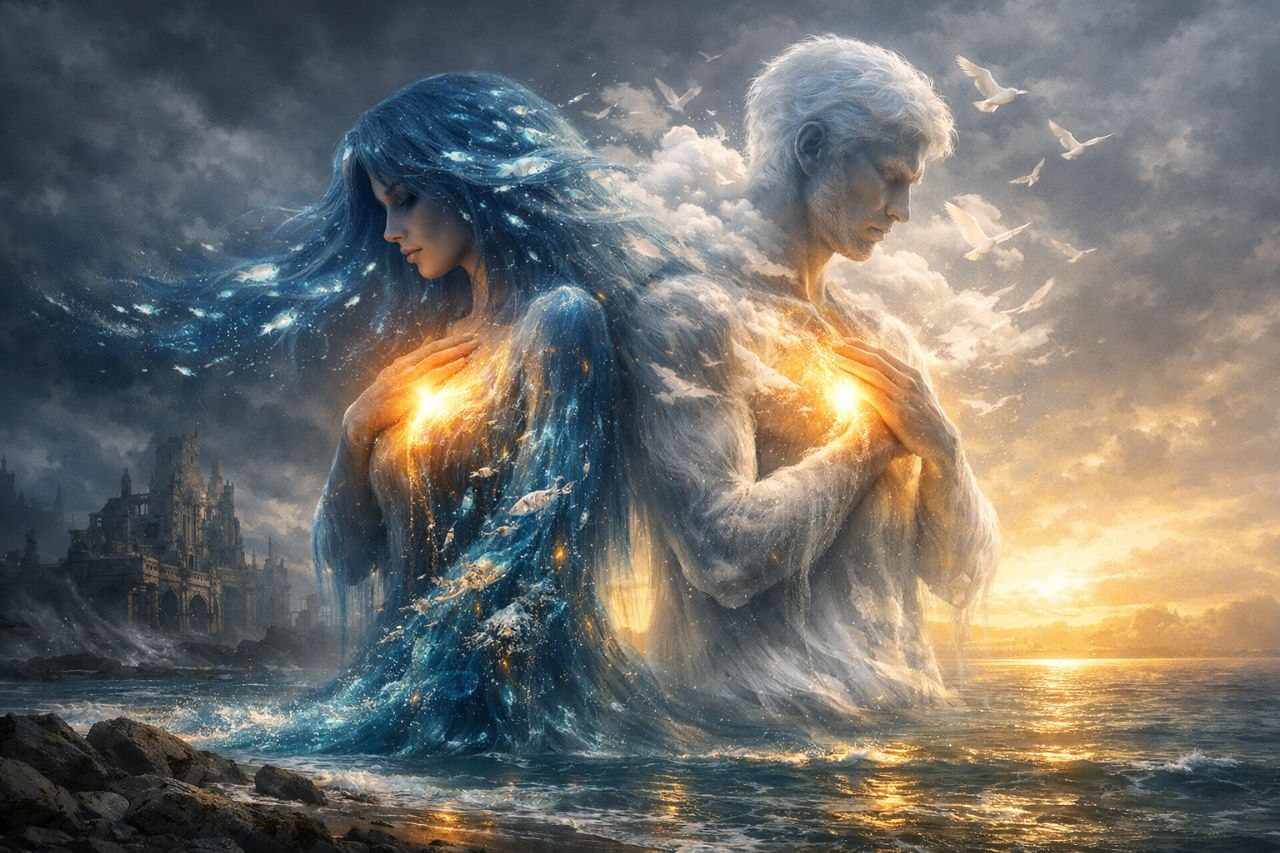 Они были вместе. Две стихии, которые не гасят друг друга, а дают жизнь — шторму, что несёт влагу, и штилю, что хранит отражение неба. Он создавал альбатроса, чьи крылья могут спать в воздушных потоках, а она — глубину, в которой этот альбатрос будет ловить свою серебряную рыбу. Они дополняли. Они любили то, что делали. И друг друга. Это была Любовь с большой буквы, вплетённая в сам фундамент реальности.