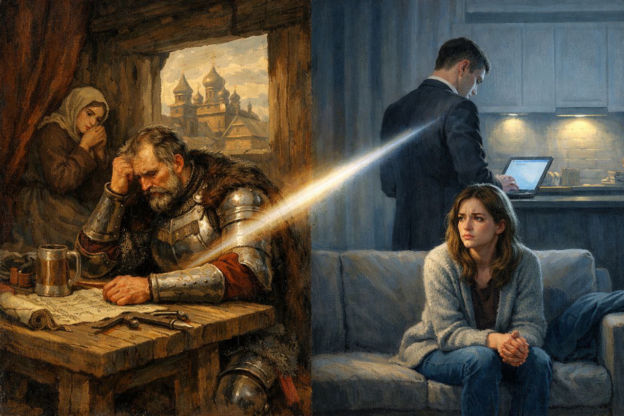 — Она умерла, — вдруг сказала моя клиентка, и по щеке покатилась слеза. — Я стоял над ней и... ничего не понимал. Отчего? Хворь какая? А она просто... просто угасла. Оттого, что слова боялась сказать. А я... я даже не знал, что ей нужно было что-то сказать. Думал, всё есть. Дом, еда, защита. А поговорить... с кем мне говорить? Я ж воевода...