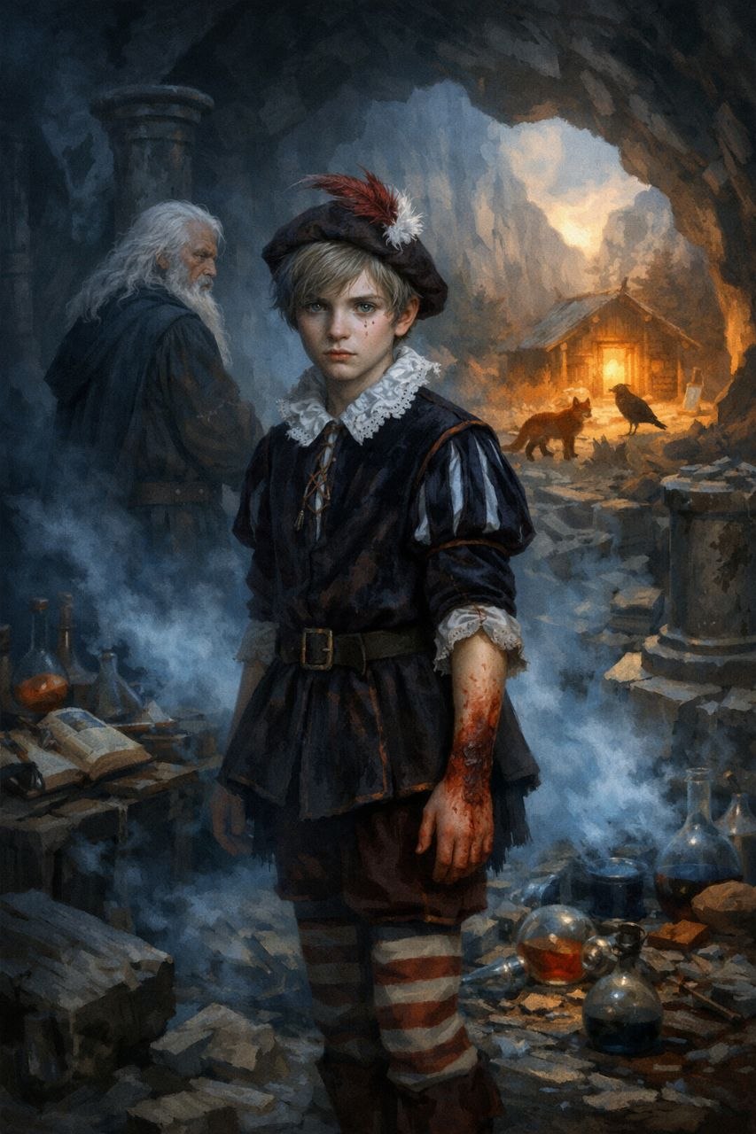 Алина погрузилась в прошлую жизнь легко, словно занавес раздвинулся сам. Она увидела его — себя. Молодой парень, лет семнадцати. Худой, светловолосый, с острым кадыком и огромными серыми глазами. Он был одет в нелепый камзол с вышивкой — точь-в-точь паж из советской «Золушки»: короткие штаны, чулки, треугольная шляпа с пером. Только вместо шпаги — палочка из корявого горного дуба.